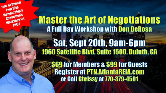 Join Don DeRosa on October 13th at 6PM SHARP at our Meeting-Before-the-Meeting that we like to call the High Tech Home Buying Creative Deal Structuring Subgroup that meets one hour BEFORE the Atlanta REIA Main Monthly Event.